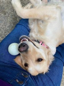 Our “goal” for Dixie Rose each day is a casual morning walk lasting about 30 minutes and a vigorous evening 45-60 minutes of fetch at our local soccer field with her obsession: the lacrosse ball. When it’s raining or especially uncomfortable heat/cold, we might skip the field and have a second walk indoors at Lowes or Home Depot. We aren’t perfect, but we work hard to reach this goal.