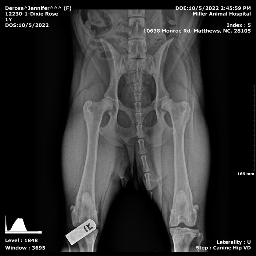 Dixie Rose DeRosa passed her OFA health screenings with flying colors. She’s sleepy from the anesthesia, but wow are we excited!